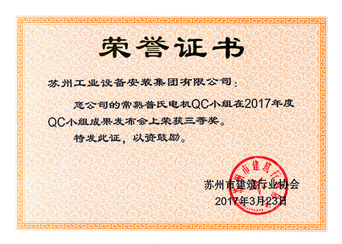 2023年苏州市QC获奖证书(提高预制化装配式机房的施工安装质量)