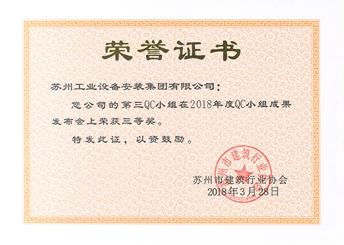 2018年度第三QC小组奖状